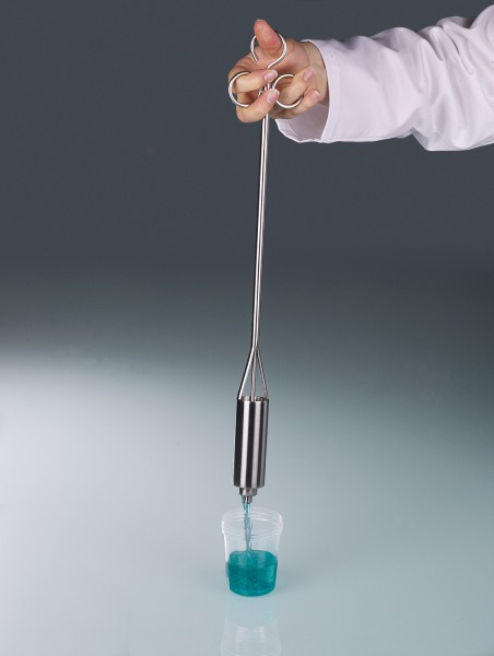 Zum Entleeren der Probe wird das Ventil durch Aufsetzen auf dem Probengefäß geöffnet. Probenehmer für dünnflüssige bis viskose Flüssigkeiten. Einfache Handhabung mit Einhandbedienung. Mit Auslauftrichter für ein sicheres Befüllen der Probenflaschen.