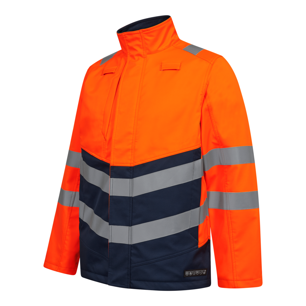 Flammhemmende Softshelljacke, die guten Schutz in Hochrisiko-Arbeitsumgebungen bietet.