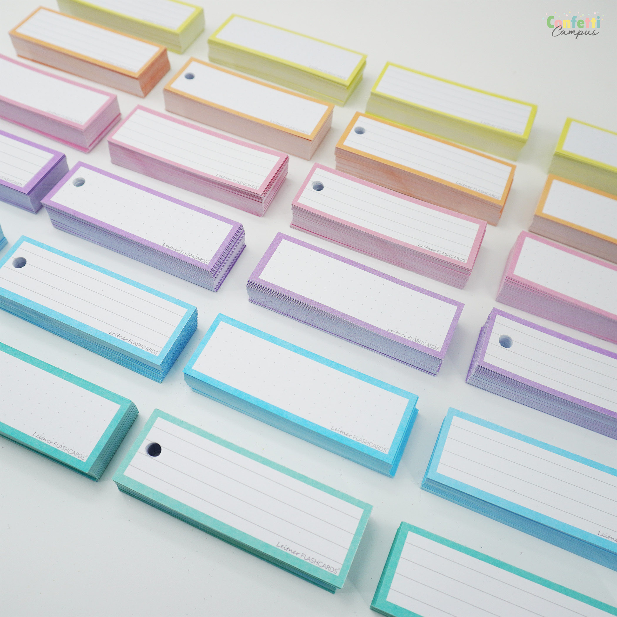 Leitner Flashcards Karteikarten sind in über 100 verschiedenen Designs, Farben und Lineaturen erhältlich. Wähle deine Lieblingsfarbe oder matche die Karten mit deinen Blöcken & Mappen.