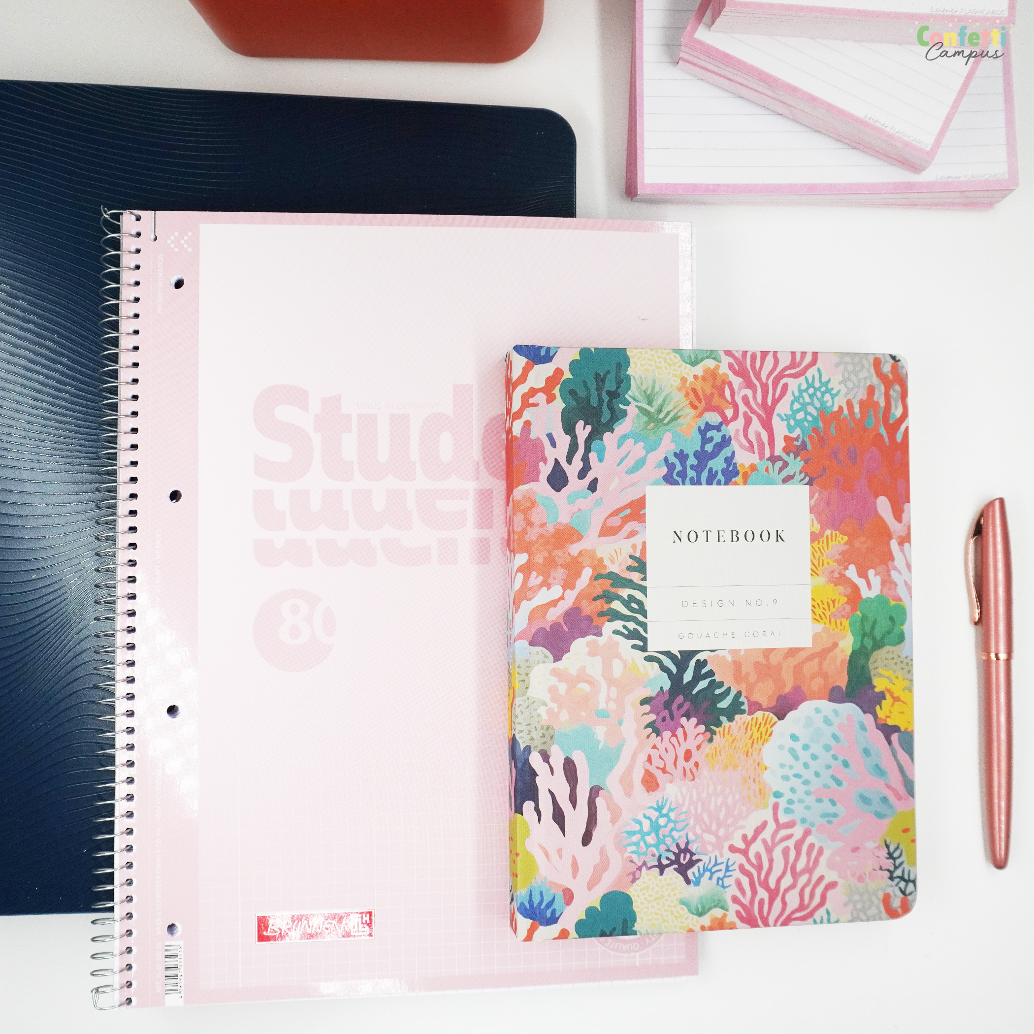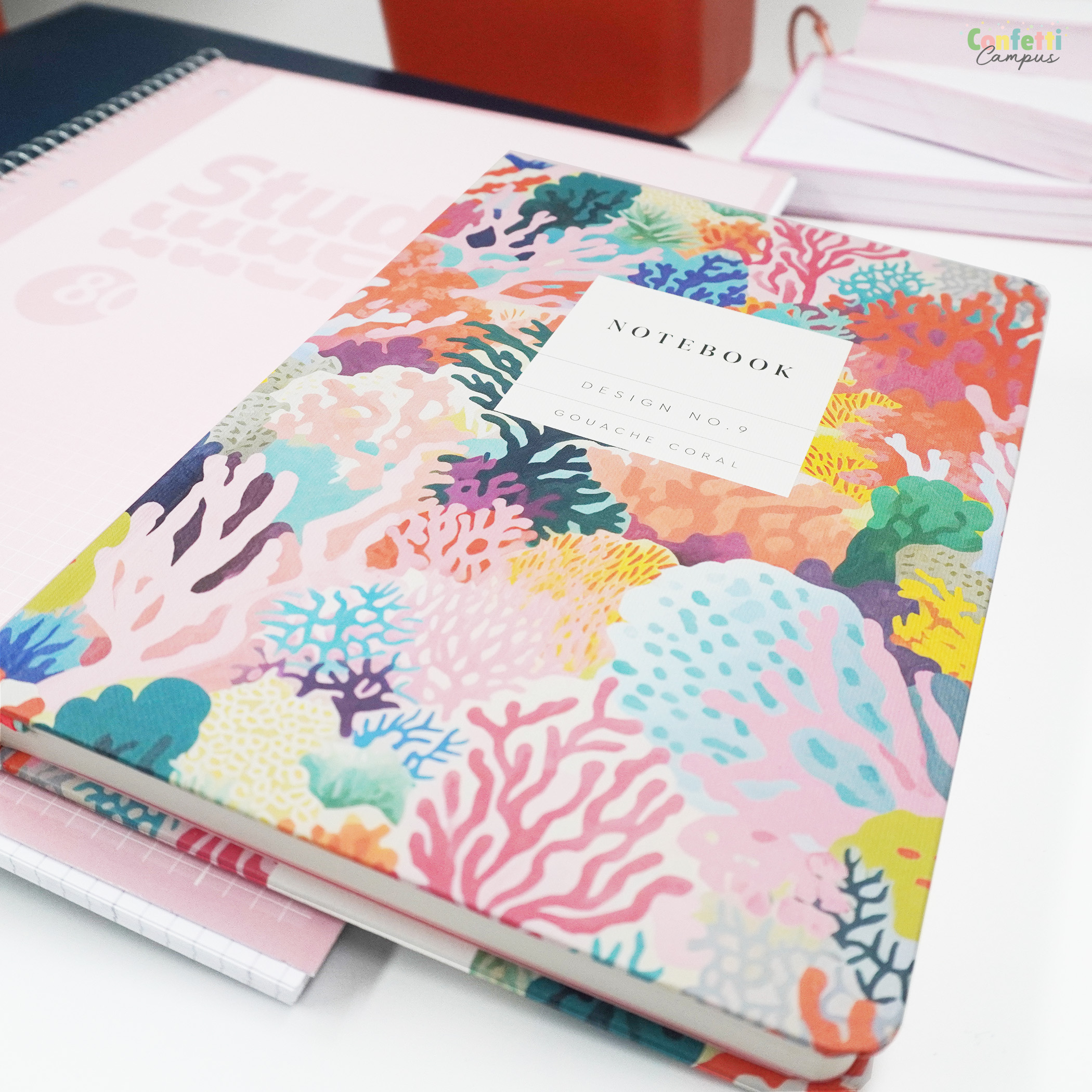 - Matt laminierter Hardcover-Einband mit Korallenmotiv