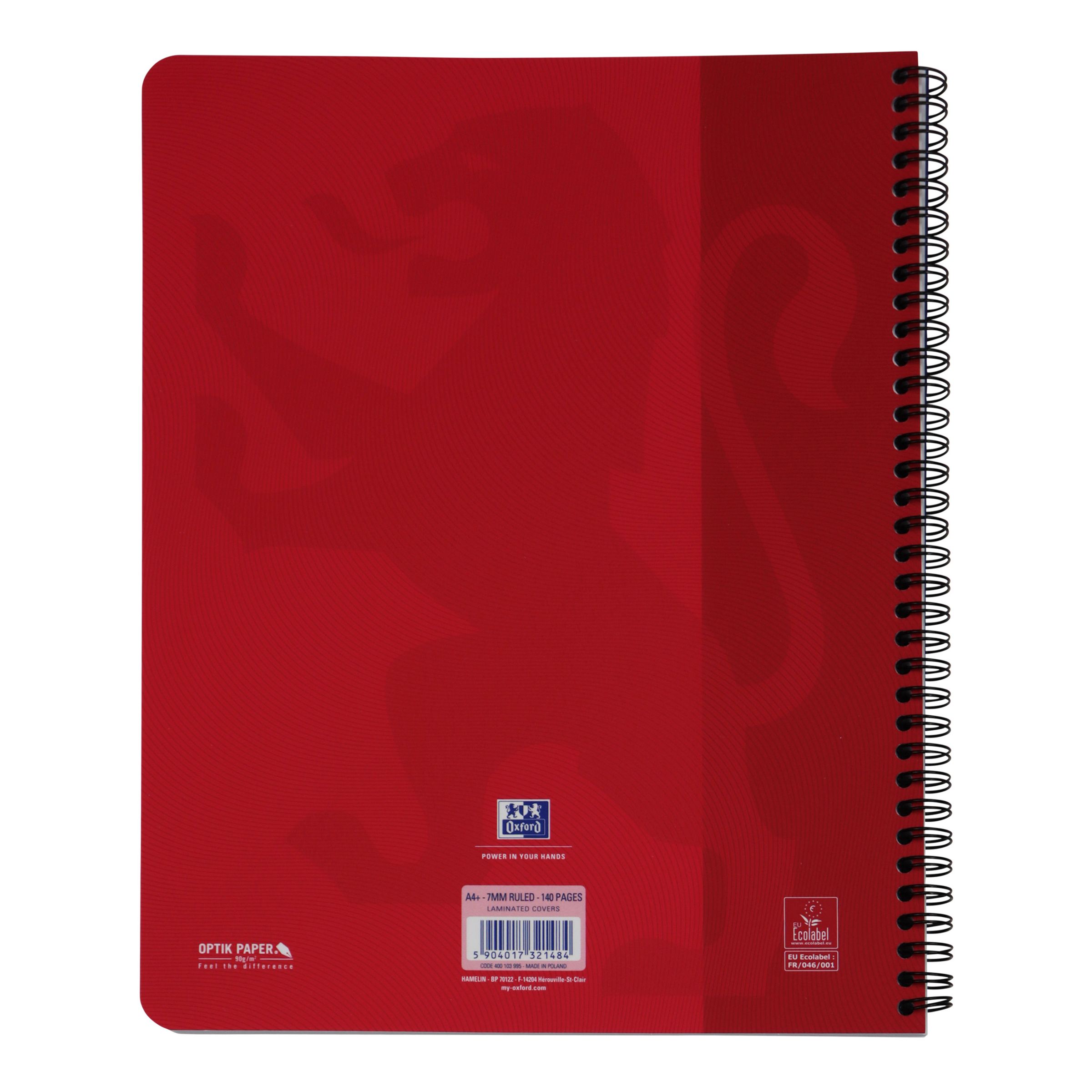 OXFORD Touch‘ Spiralbuch – Format A4+ Liniert – Rot – 140 Seiten