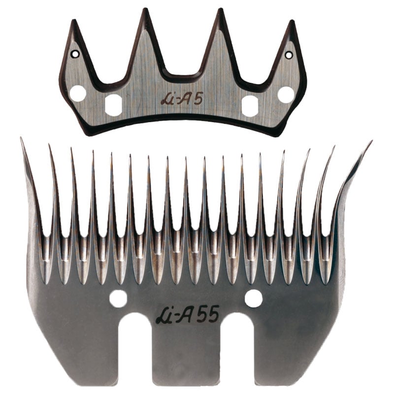 Schermesser für Lister Scherkopf V, mit ausgestellten Auß;;enzähnen am Untermesser zum "Einziehen" der Wolle für schnelleres Scheren. Professionelles Spezialmesser für Schafe mit feiner Wolle.