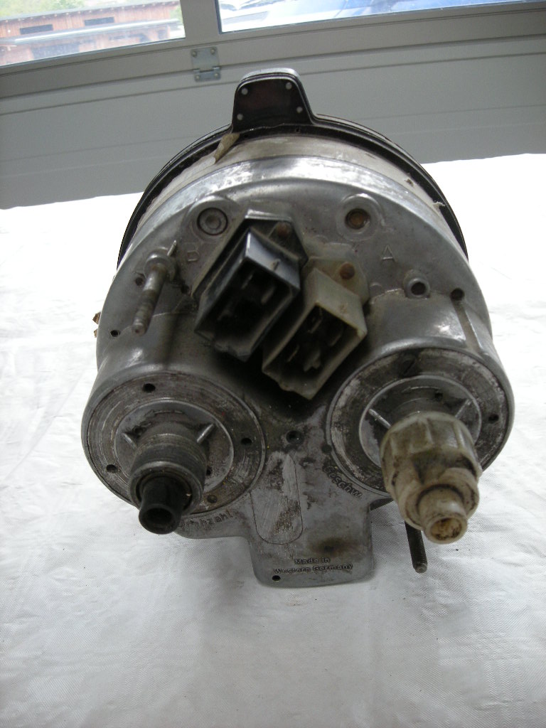 Gebrauchter Tachograph mit Drehzahlmesser, Plastikglas zerkratzt.