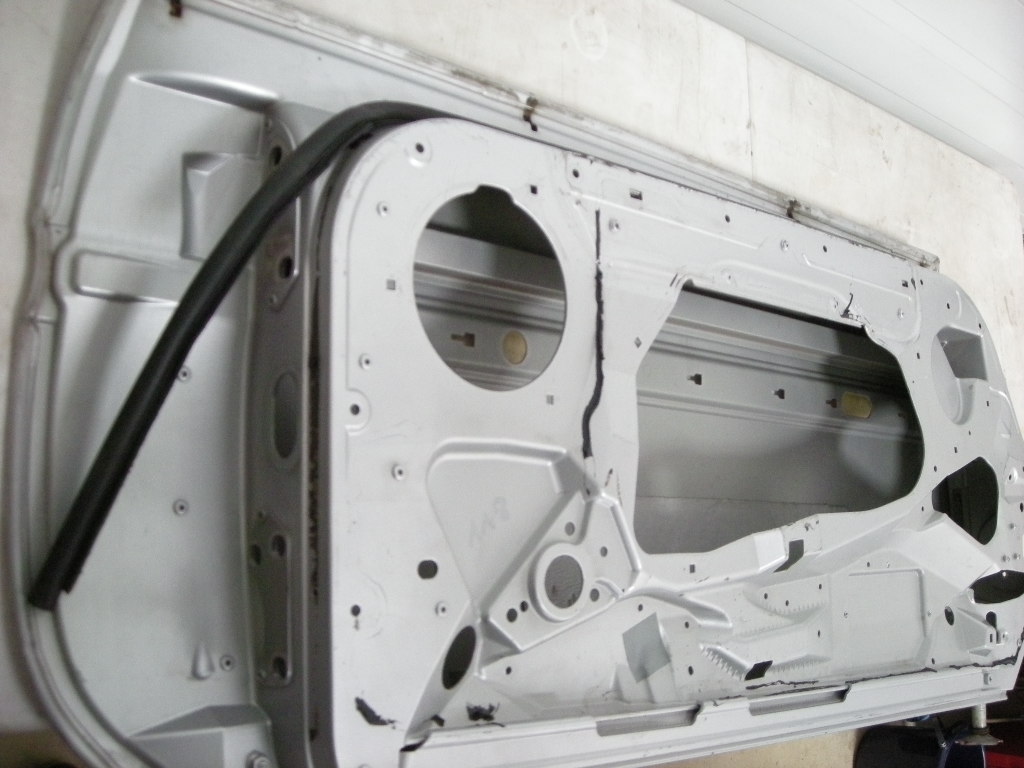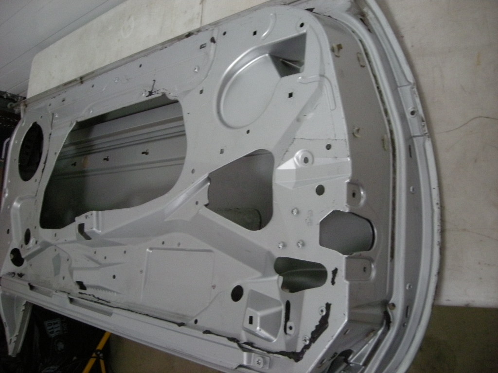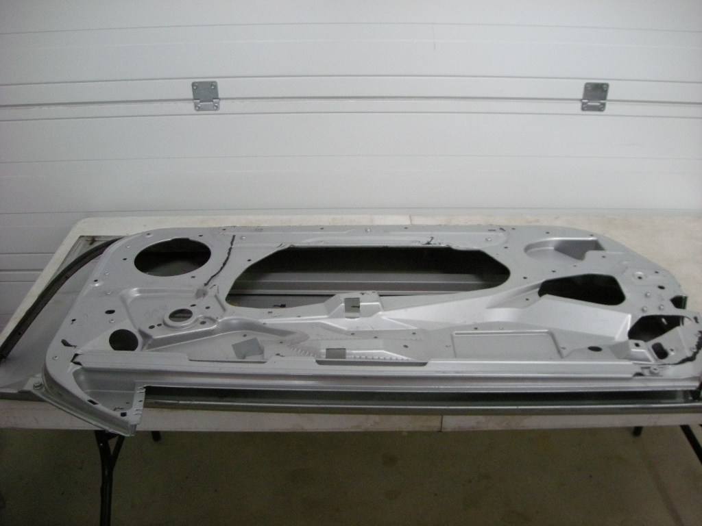 Türe links aus Aluminium, ein paar Dellen sind ersichtlich.